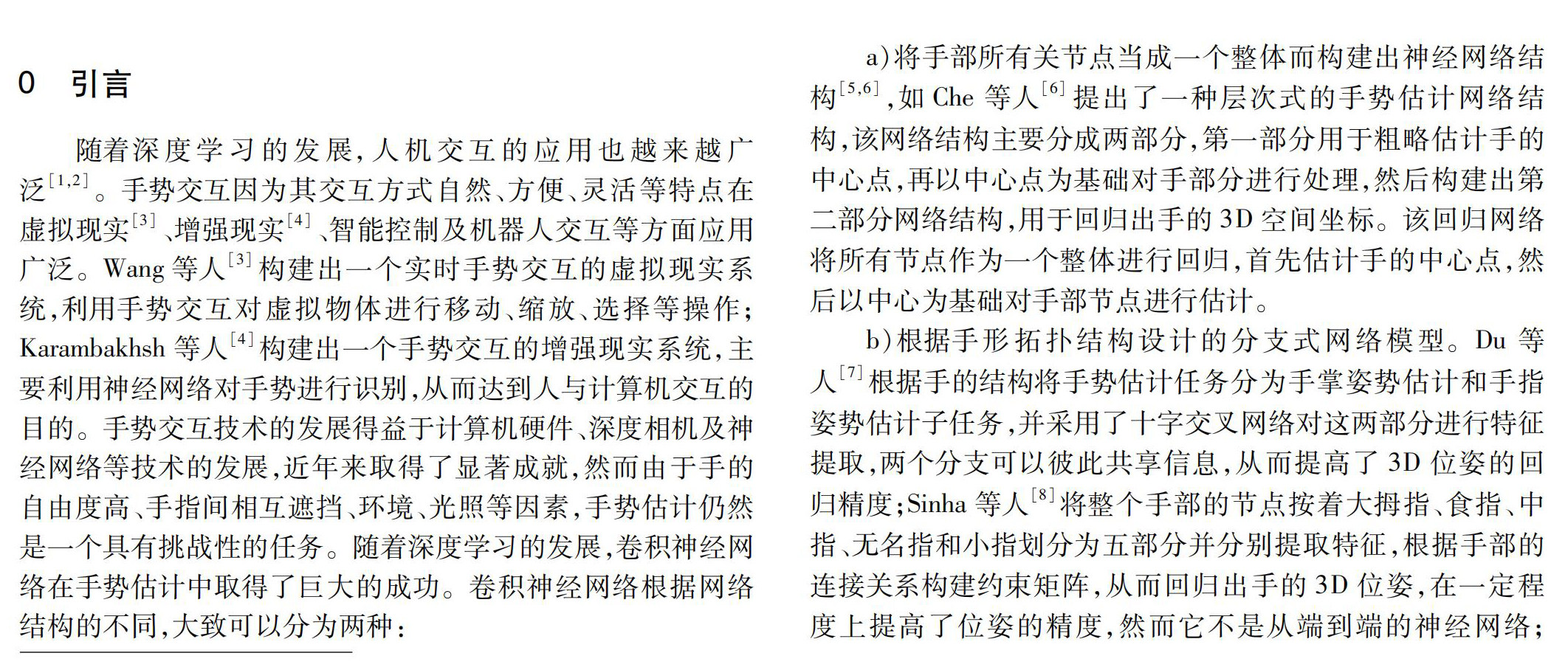 摘 要:人类在认识事物时往往是从粗到细再到精,受认识过程的启发,根据手的拓扑结构设计了一种新的手势估计网络。该方法首先从手的角度提取全局特征,然后从手指角度提取局部特征,最后从关节点的角度提取点的细化特征,并融合三个不同阶段特征回归出每一关节点的3D空间坐标值,从而改善了回归精度。由于深度图只保存了目标点到相机的深度信息,以深度图作为神经网络的输入不利于卷积核获取其他两个方向的坐标信息;为了能在2D卷积核中直接利用空间坐标的全部信息,利用相机成像原理对深度图进行转换,将深度图转换为3通道的图像,这样提高了神经网络的回归精度。(剩余17726字)
