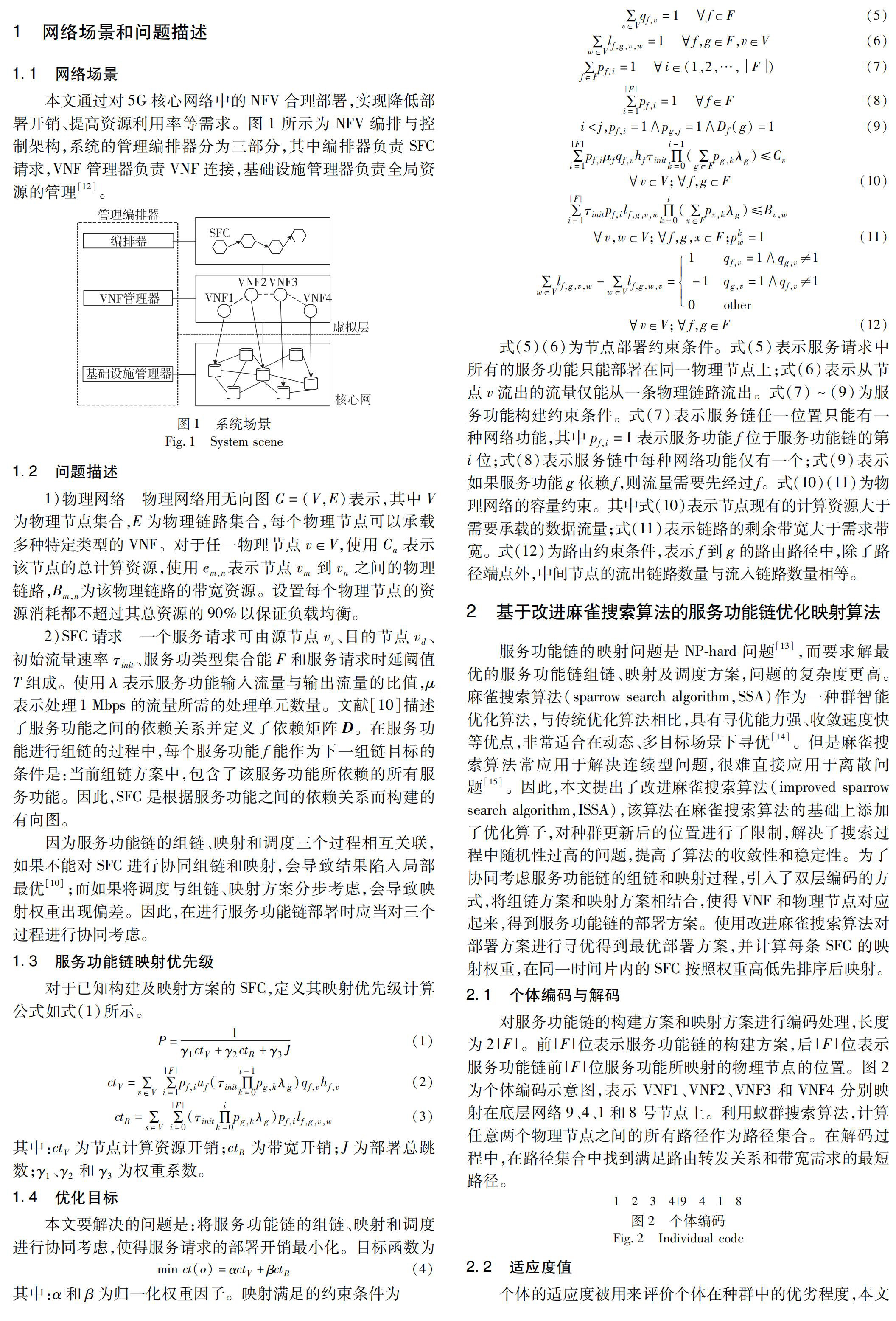基于改进麻雀搜索算法的服务功能链优化映射算法