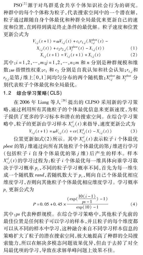 摘要:针对维度学习策略(dimensional learning strategy,DLS)中存在的过度开发问题,提出了一种综合维度学习的多群协作粒子群优化算法(CDL-MCPSO)。为提高种群搜索效率,采用基于主从范式的集群结构,将种群划分为一个主群和四个从群,主群执行综合学习策略在搜索空间进行大范围探索,从群执行综合维度学习策略(comprehensive dimensional learning,CDL)在局部最优解附近进行高精度的开发,主从群通过执行具有不同职能的算法能够有效实现其在勘探和开发之间的平衡;同时为保持种群多样性,提出了一种新的解交换机制(SEM)用于在主从群独立运行各自算法若干代之后进行信息的交流与协作,以指导粒子后期进行更准确的搜索;最后,针对初始化过程随机性过高,运用拉丁超立方体采样方法对算法重建输入分布。(剩余22014字)