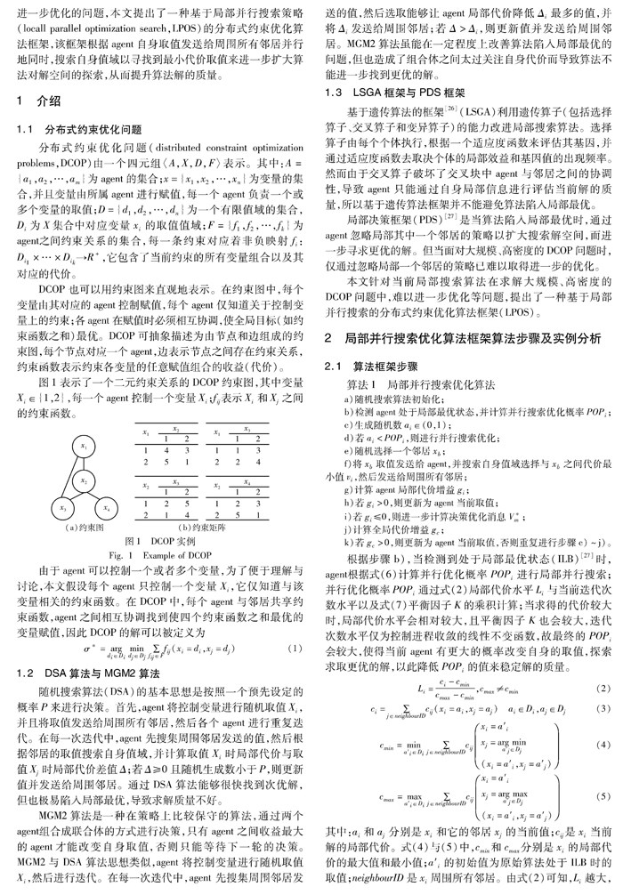 摘要:针对当前局部搜索算法在求解大规模、高密度的分布式约束优化问题(DCOP)时,求解困难且难以跳出局部最优取得进一步优化等问题,提出一种基于局部并行搜索的分布式约束优化算法框架(LPOS),算法中agent通过自身的取值并行地搜索局部所有邻居取值来进一步扩大对解空间的搜索,从而避免算法过早陷入局部最优。(剩余15775字)