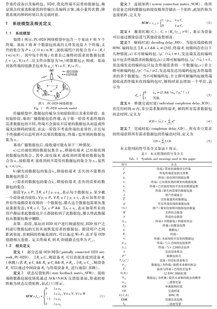 摘要:为了满足终端用户的个性化需求并且降低D2D网络的传输时延,提出了一种基于终端差异化的立即可解网络编码(IDNC)协作重传方案。首先,针对PC-D2D网络存在的解码冲突以及传输冲突问题提出一种新的IDNC算法框架并且在此框架的基础上搜索极大独立集(MIS),综合考虑数据包的接收情况、终端用户需求以及链路丢包率情况设计权重,衡量权重选取一次重传时延增量最小的并发协作重传终端以及数据包组合生成编码包;同时,考虑不需要数据包提供的未来解码机会,优化终端不需要的数据包,进一步降低传输时延。(剩余17147字)