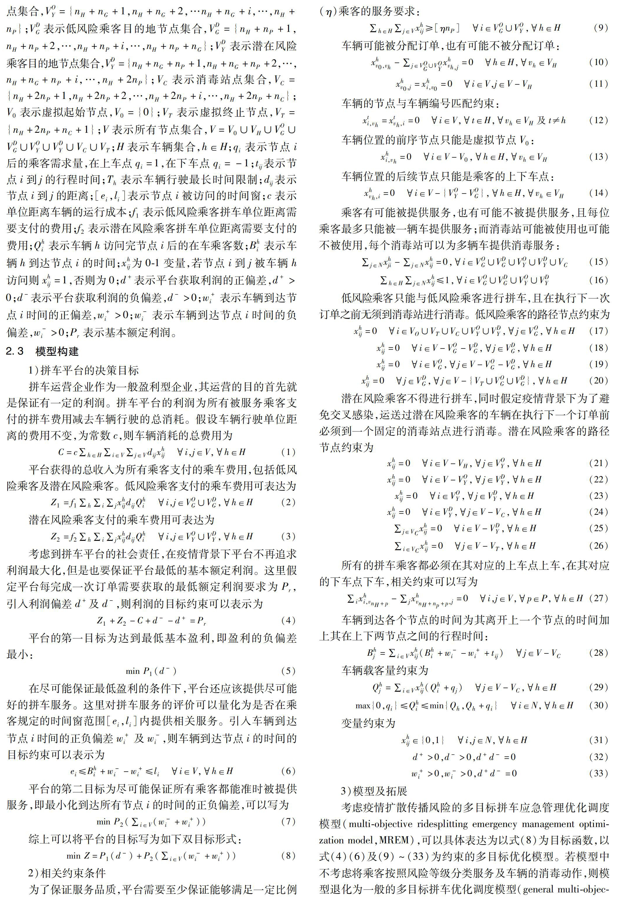 考虑疫情扩散传播风险的多目标拼车应急管理优化调度模型