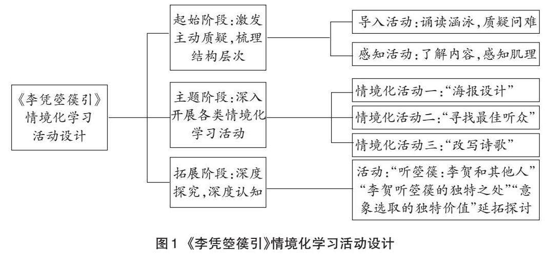 【摘 要】以情境化学习活动推进古诗词深度学习,是实现学生思维发展与提升的有效策略。以《李凭箜篌引》的教学为例,教师引导学生初步感知诗歌肌理之后,开展“设计海报”“寻找最佳听众”“改写诗歌”三个情境化学习活动,深入发掘诗歌的独特价值;又结合知人论世,深入分析并感悟其隐藏在听曲过程中的身世之感和时代喟叹,从而达成深度阅读体验。(剩余5565字)