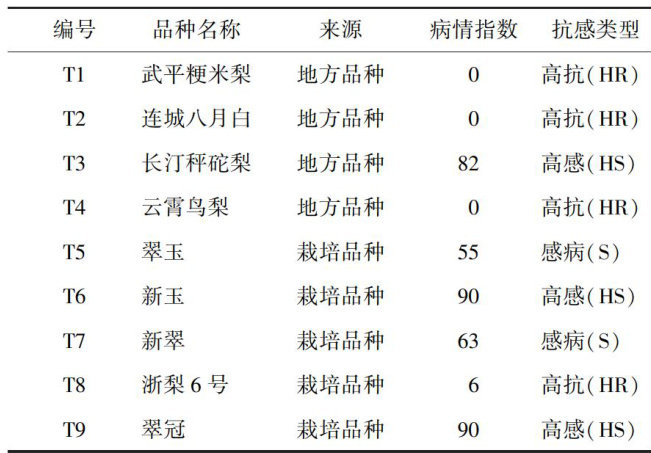 thracnose.Cuiguan,Xinyu and Changtingchengtuoli were highly susceptible cultivars,Xincui and Cuiyu were susceptiblecultivars,and Zheli6,Yunxiaoniaoli,Lianchengbayuebai and Wupingjingmiliwere highly resistant cultivars.There were differences in stomatal density,wax content and leaf weight ratio,as well as leaf thickness, upper/lower epidermis thickness,spongy tissue thickness and tissue compactness among different pear cultivars,but therewasnosignificantcorrelationwithdiseaseindex.The palisade tissue thickness and tissue porosity in leaf tissue