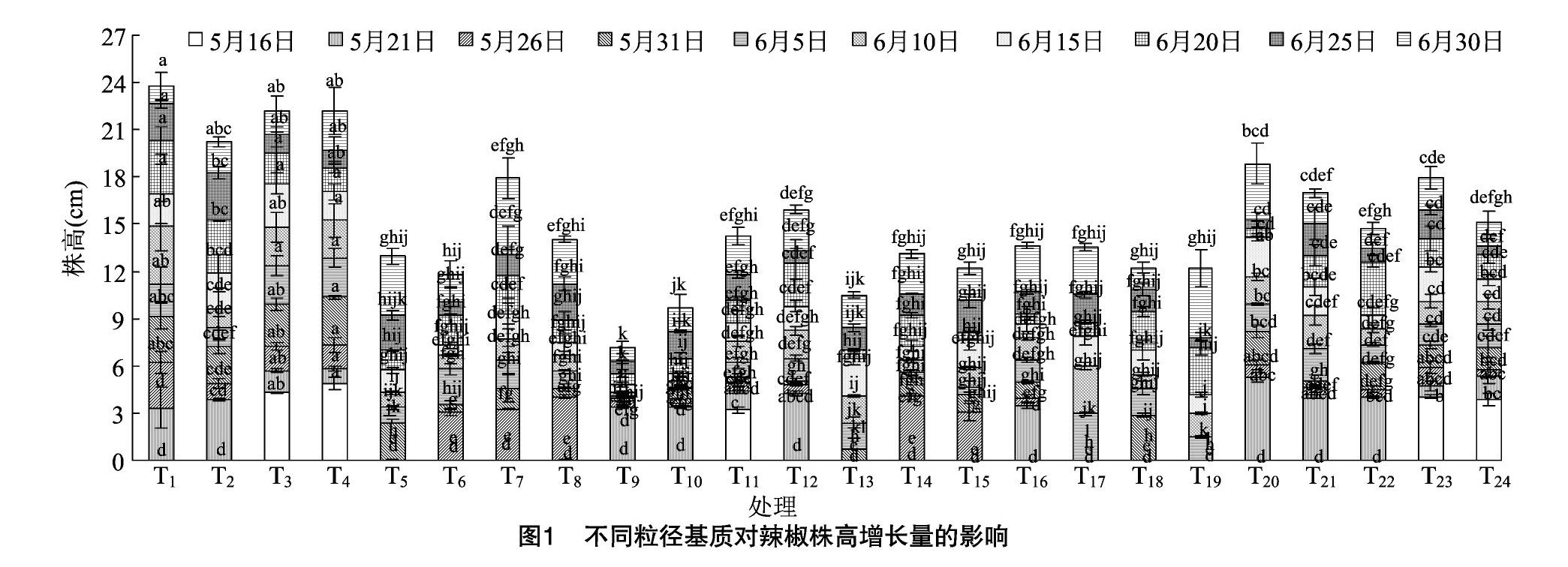 摘要:为探索适宜辣椒育苗的低成本当地材料基质,于2021年4—7月在塔里木大学园艺试验站连栋温室内进行辣椒育苗基质筛选的粒径试验,以草炭、菇渣、炉渣、河沙、黄沙、蛭石的同粒径复混基质互为对照,对不同粒径复混基质的理化性质及辣椒的株高、茎粗、可溶性糖含量、可溶性蛋白含量等生长与生理指标进行测定。结果表明:T1(0.25~0.50 mm草炭复混基质)的地上部生长指标显著高于其他处理组,T3(1~2 mm草炭复混基质)的辣椒根系生长显著高于其他处理组,主成分与综合评价分析后得出,T23(0.5~1.0 mm粒径)的蛭石复混基质仅次于草炭各粒径复混基质,0.5~1.0 mm蛭石可以在辣椒育苗复混基质中代替草炭;草炭复混基质中T3(1~2 mm粒径)辣椒育苗效果显著高于同基质其他处理组;菇渣复混基质中T8(2~5 mm粒径)辣椒育苗效果显著高于同基质其他处理组;炉渣复混基质中T12(2~5 mm粒径)辣椒育苗效果显著高于同基质其他处理组;河沙复混基质中T16(2~5 mm粒径)辣椒育苗效果显著高于同基质其他处理组;黄沙T17(0.25~0.50 mm粒径)显著高于T13(0.25~0.50 mm粒径)河沙的育苗效果;珍珠岩复混基质中T20(1~2 mm粒径)辣椒育苗效果显著高于同基质其他处理组;蛭石复混基质中T23辣椒育苗效果显著高于同基质其他处理组。(剩余12084字)