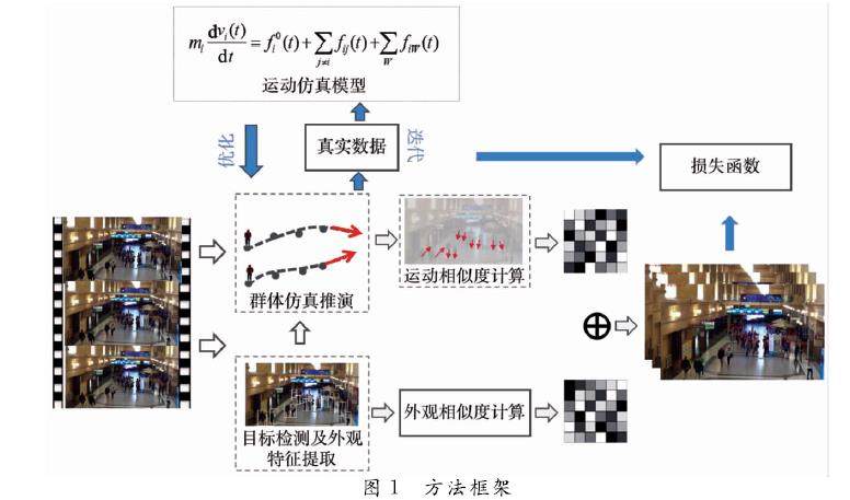 基于数据和群体运动仿真模型迭代优化的多目标跟踪算法