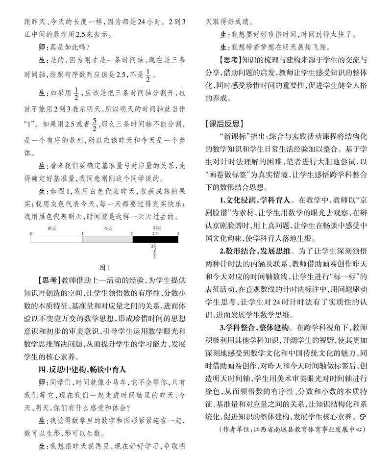 在小学数学领域里,数与形密不可分。《义务教育数学课程标准(2022年版)》(以下简称“新课标”)指出:设计情境真实、较为复杂的问题,引导学生综合运用数学学科和跨学科知识与方法解决问题。由此,笔者以跨学科整合为依据,创设“我给画卷做标签”主题活动,引导学生进行操作与创造,领悟数线上点表示的时间计时法与分数的对应关系,借助数形结合理解与深化24时计时法。(剩余3235字)