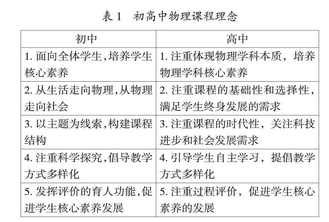 初高中物理新版课程标准共有要素与特有要素的分析研究