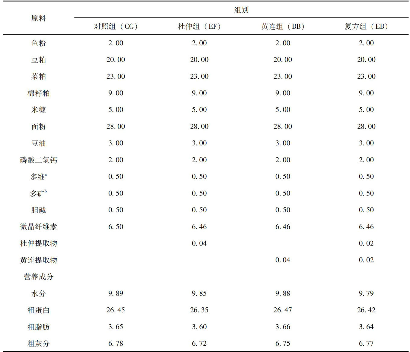 杜仲和黄连提取物对草鱼生长性能和品质特性的影响