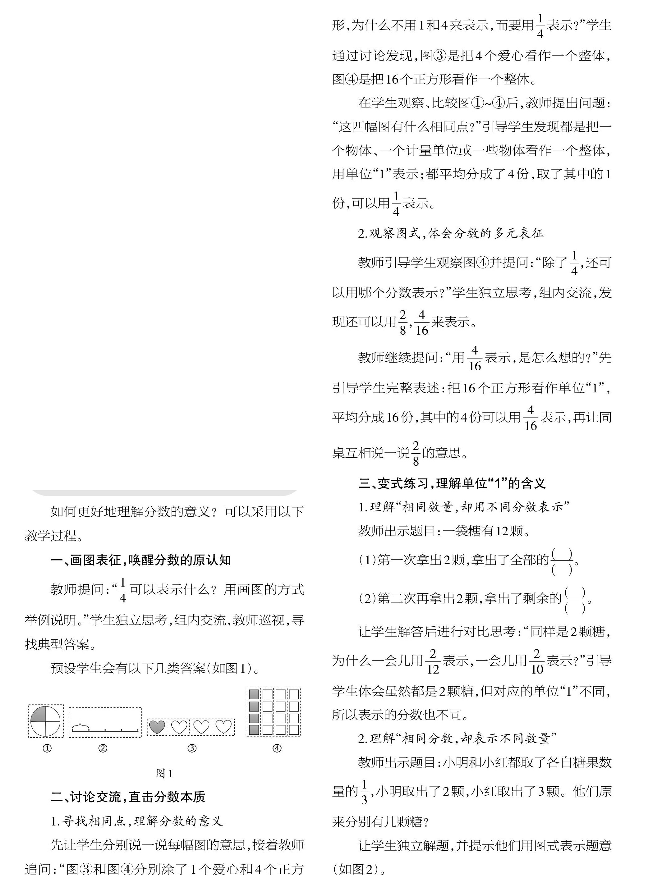 如何更好地理解分数的意义?可以采用以下教学过程。