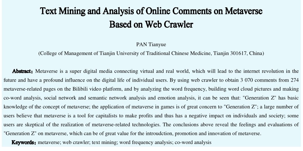 基于网络爬虫技术的元宇宙评论文本挖掘分析