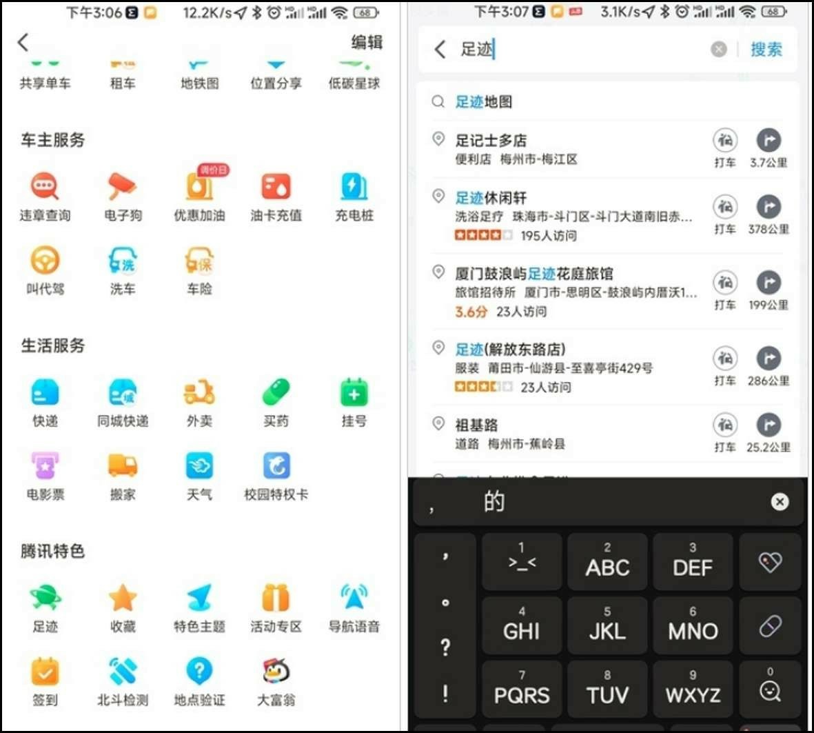 那么这个足迹地图在哪里呢?打开《腾讯地图》,然后在首页工具的更多页面中找到腾讯特色工具分类,分类里有个足迹工具。还有一种方法就是直接搜索“足迹”,然后选择足迹地图即可直接打开足迹地图。(剩余1293字)