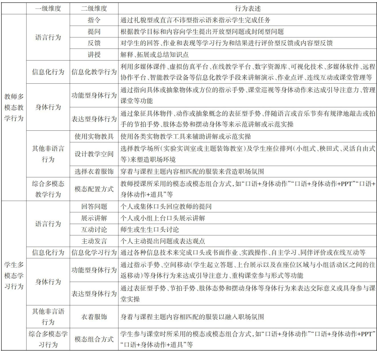 优质职教课堂多模态教学行为的多维剖析及实践启示