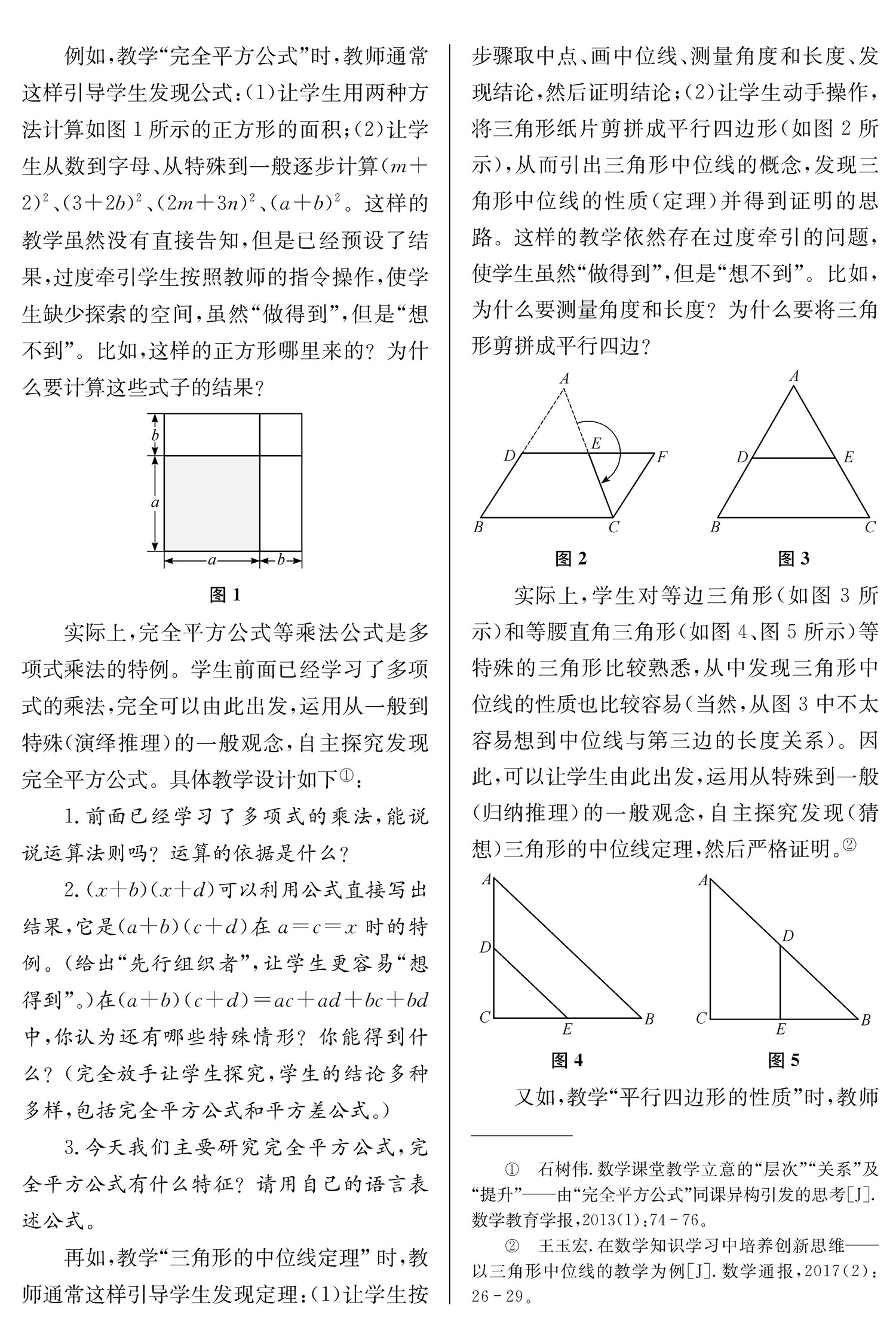 摘要:数学学习的最高层次是知何由以知其所以然,即“想得到”。已有知识、一般观念(或者说基本思想方法、研究“套路”)以及最终目标、差异消除等,都是“想得到”的重要影响因素。数学教学中,要让学生从已有知识出发,运用一般观念,自主探究发现新的知识;从最终目标出发,实现差异消除,自主探究得到解题思路。这样,学生才更能“想得到”。(剩余3171字)