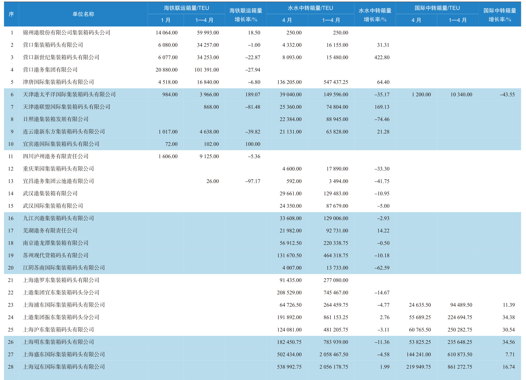 国枢纽港集装箱码头多式联运吞吐量快报(2025年4月)