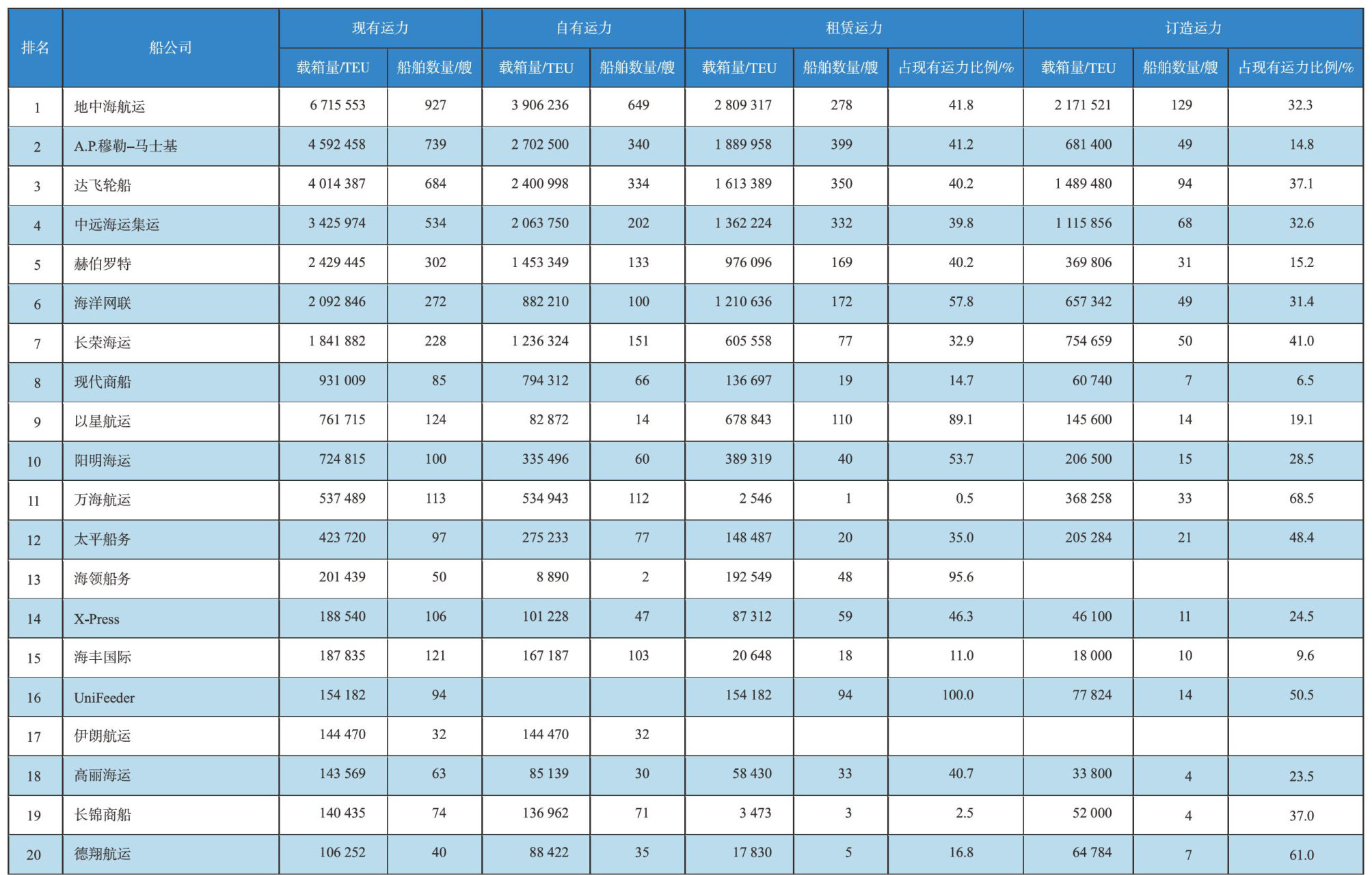 全球二十大集装箱船公司运力排名(截至2025年7月2(剩余36字)