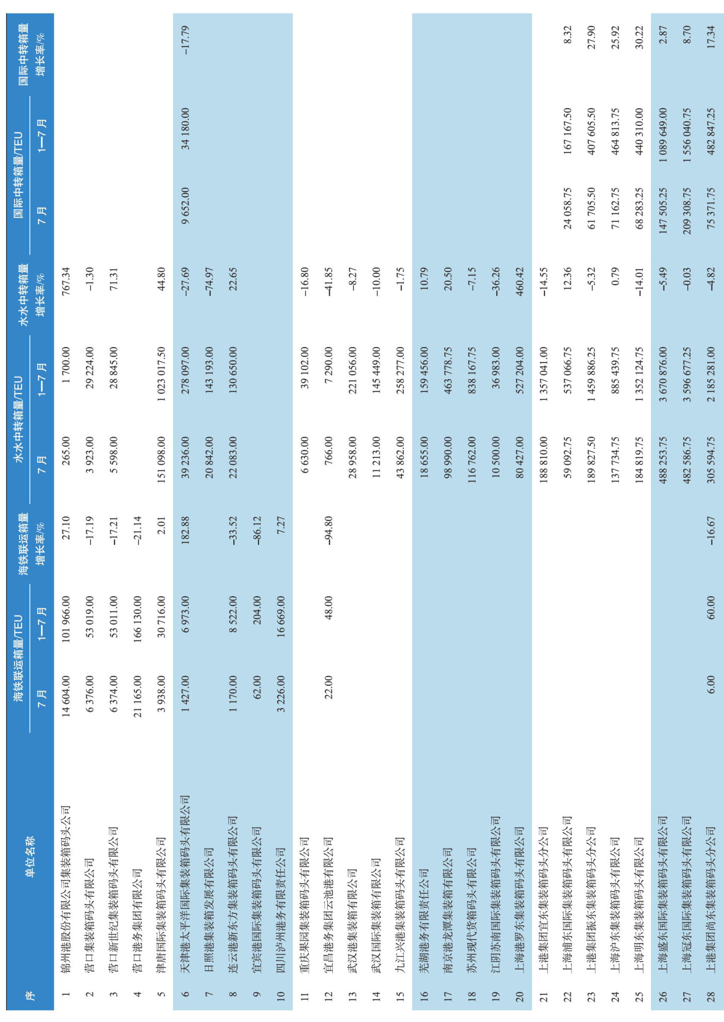中国枢纽港集装箱码头多式联运吞吐量快报(2025年7月)