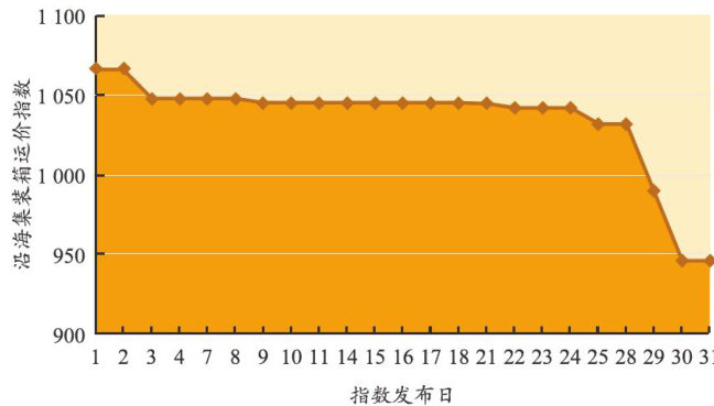 天津航运指数下设的沿海集装箱运价指数包括沿海集装箱出港运价指数(以下简称“出港指数”)和沿海集装箱进港运价指数(以下简称“进港指数”)。,沿海集装箱运价指数共发布23次(见图1):上旬,指数小幅下行;中旬,指数微幅盘整;下旬,指数大幅下跌。上旬至中旬,出港指数明显走低后维持稳定,进港指数连续微幅下滑,沿海集装箱运价指数累计下跌近 2% 。(剩余716字)