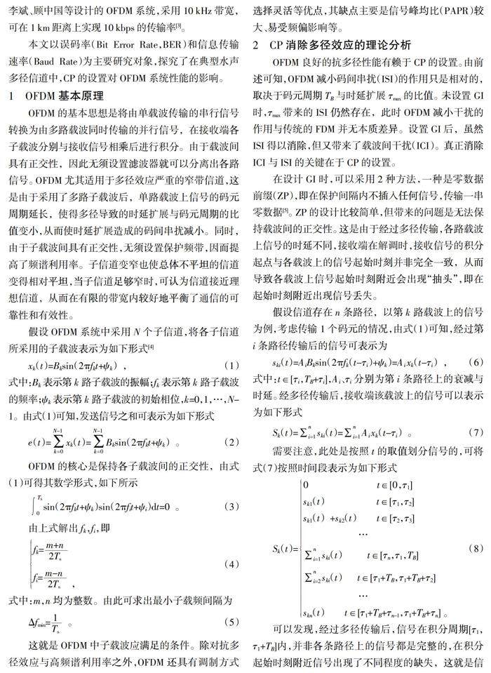 典型水声多径信道下CP对OFDM系统性能的影响
