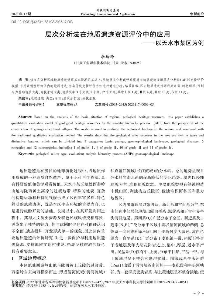 摘 要:该文在分析区域地质遗迹资源基本情况的基础上,从地质文化村建设角度建立地质遗迹资源层次分析法(AHP)定量评价模型,采用该模型评价区内的地质遗迹,并与传统定性评价方法进行对比分析。结果显示,区内地质遗迹资源种类丰富,特色鲜明,可划分为基础地质大类、地貌景观大类、地质灾害3个大类,5个类,12个亚类,其中Ⅰ级1处,Ⅱ级4处,Ⅲ级10处,Ⅳ级11处。(剩余4250字)