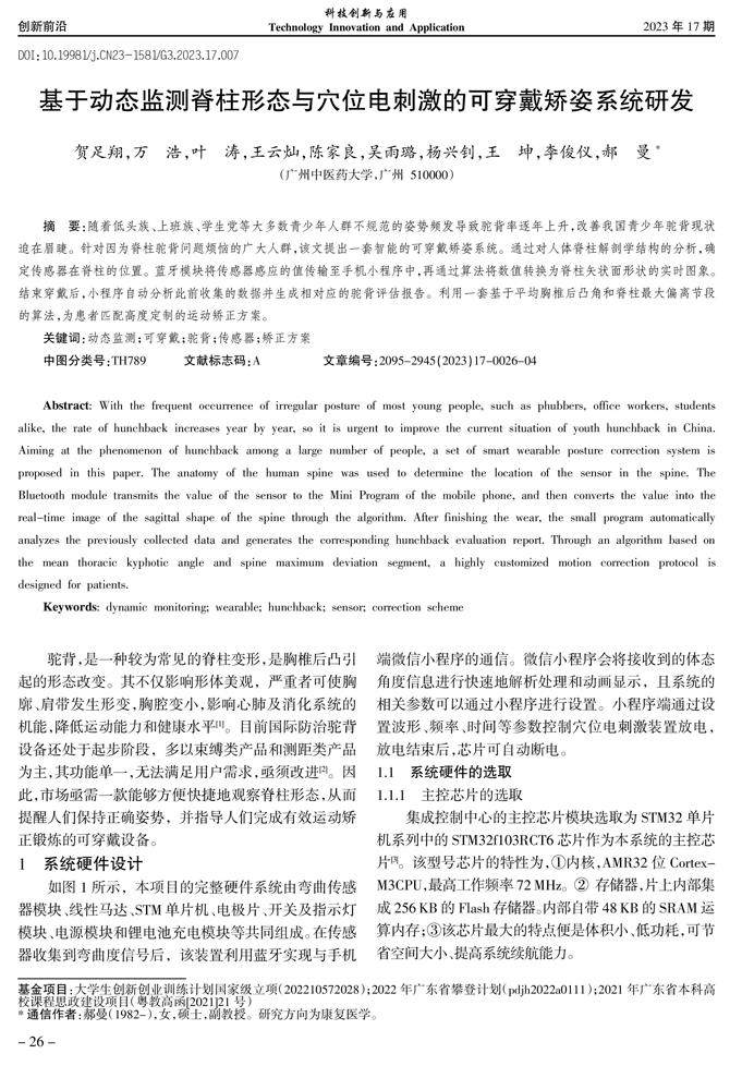 基于动态监测脊柱形态与穴位电刺激的可穿戴矫姿系统研发