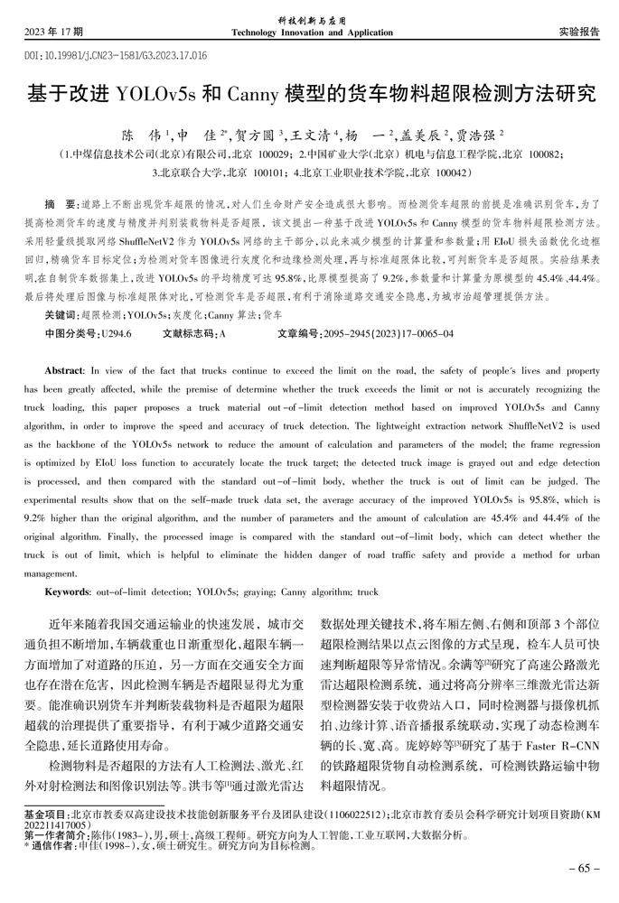 基于改进YOLOv5s和Canny模型的货车物料超限检测方法研究