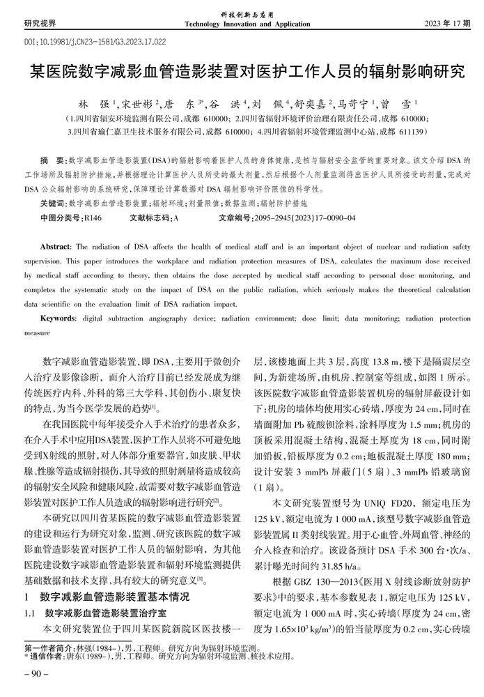 某医院数字减影血管造影装置对医护工作人员的辐射影响研究
