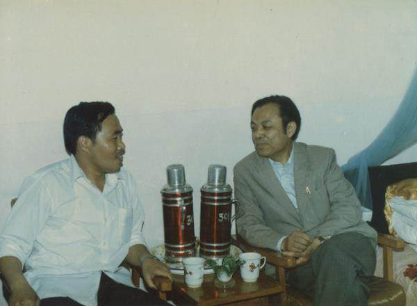 1986年,第一届银河奖座谈会(左为吴显奎,右为鲍昌)
