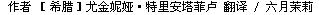 来自希腊的尤金妮娅·特里安塔菲卢是一位作家和艺术家。她的作品曾被提名星云奖、世界奇幻奖、伊戈奈特奖等奖项,在尖峰、TOR、不思议杂志、奇异地平线等国外知名科幻平台都可以找到她的作品。