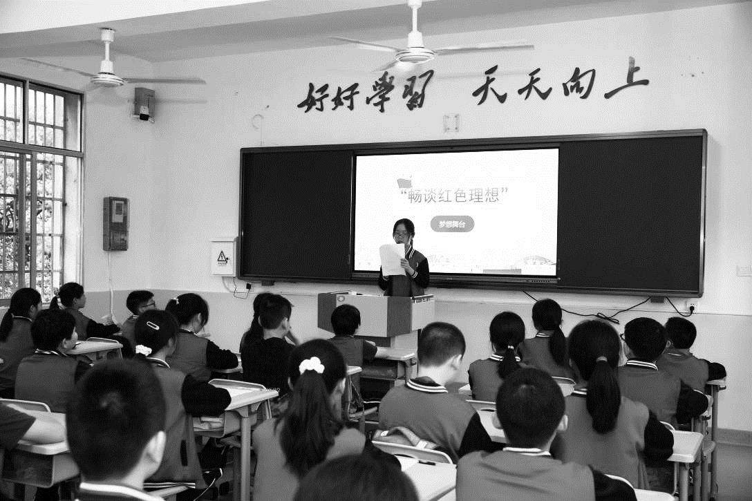 10 月8 日下午3 时,20 辆满载学生的大巴车驶入韶山思政教育实践中心的营地,隆回县第一中学近千名高一学生在研学助理的引导下来到毛泽东广场举行“我的韶山行”红色研学开班仪式。他们齐声高唱《没有共产党就没有新中国》,举起右手庄严宣誓:“请党放心,强国有我。”嘹亮的歌声、铿锵的誓言响彻广场,一张张年轻的脸庞庄严肃穆,眼神中满是对建设祖国美好明天的坚定信心。(剩余1692字)