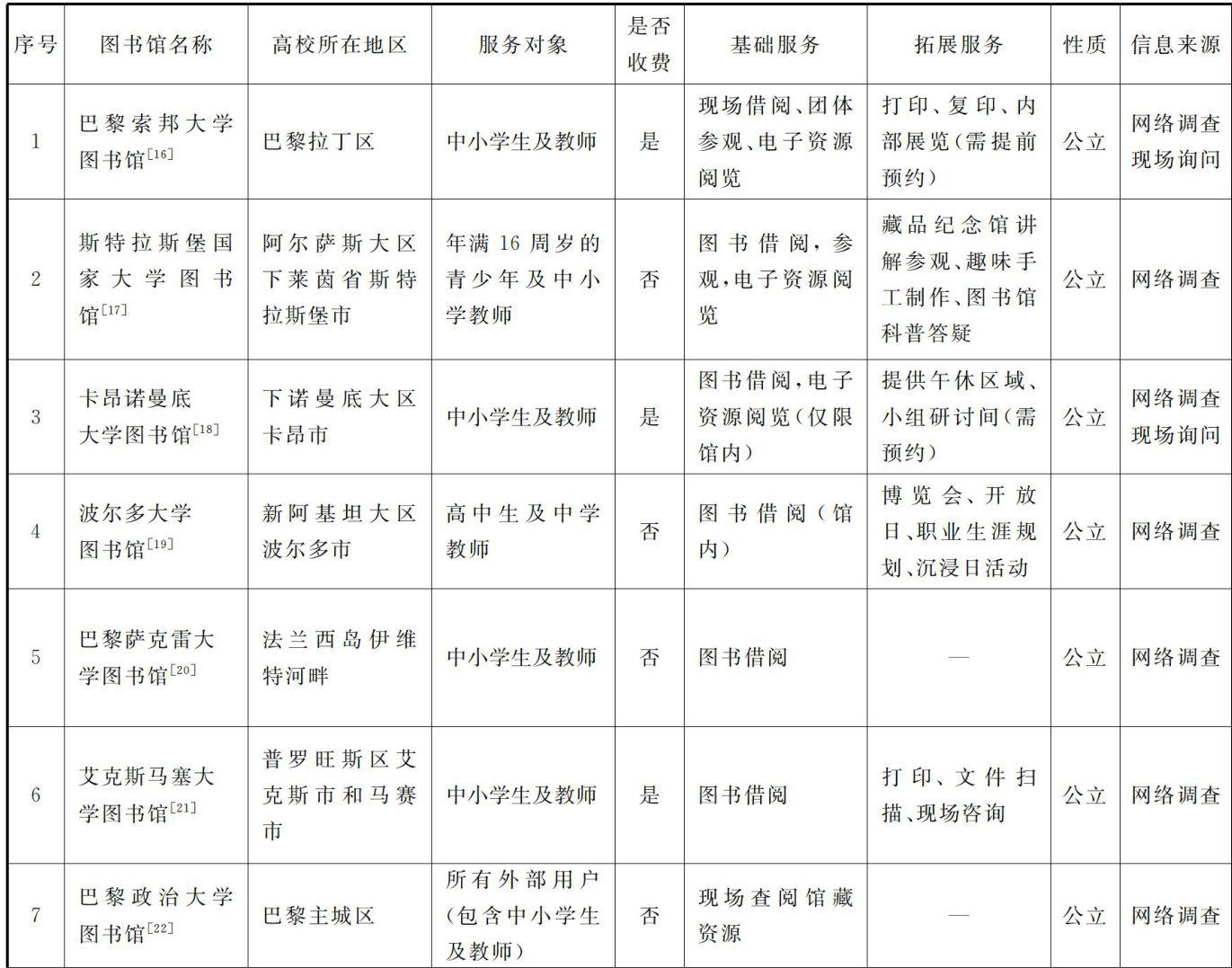 法国高校图书馆面向中小学生开放服务的调查与思考