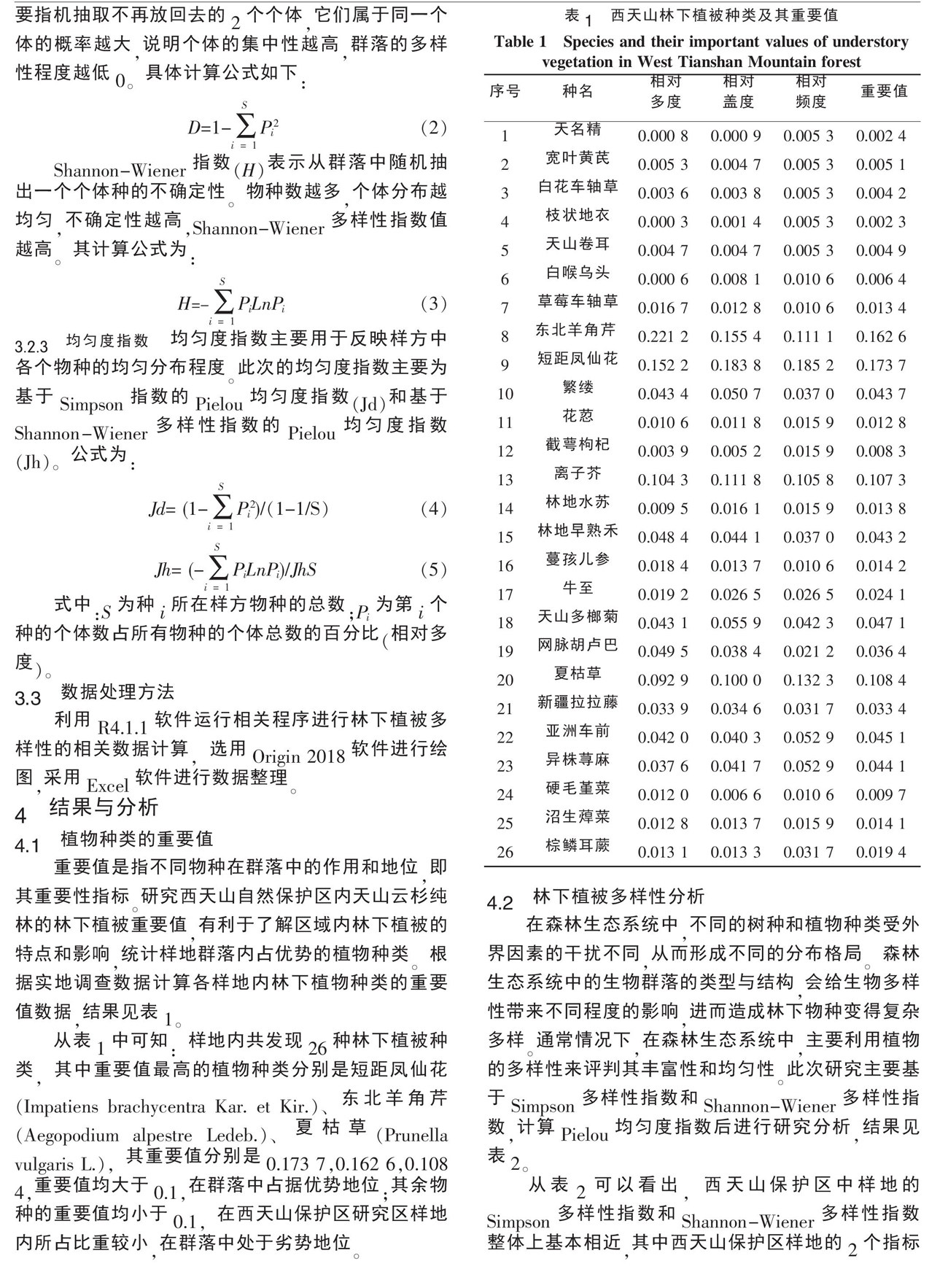 关键词:西天山保护区;天然林;林下植被多样性