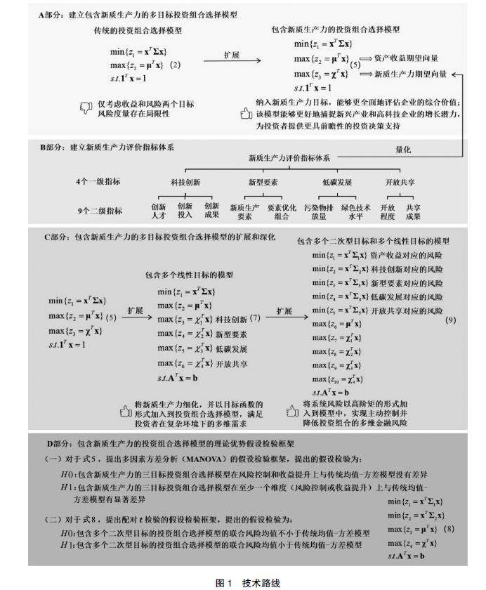 【摘 要】 在投资决策中,传统的均值-方差模型仅考虑收益和风险两个目标,难以适应日益复杂的金融市场环境。随着经济高质量发展和科技进步,企业新质生产力水平成为影响长期收益的重要因素。文章通过扩展传统的均值-方差模型,创新性地添加新质生产力这一目标函数,构建了包含收益、风险和新质生产力的投资组合选择理论模型。(剩余14255字)