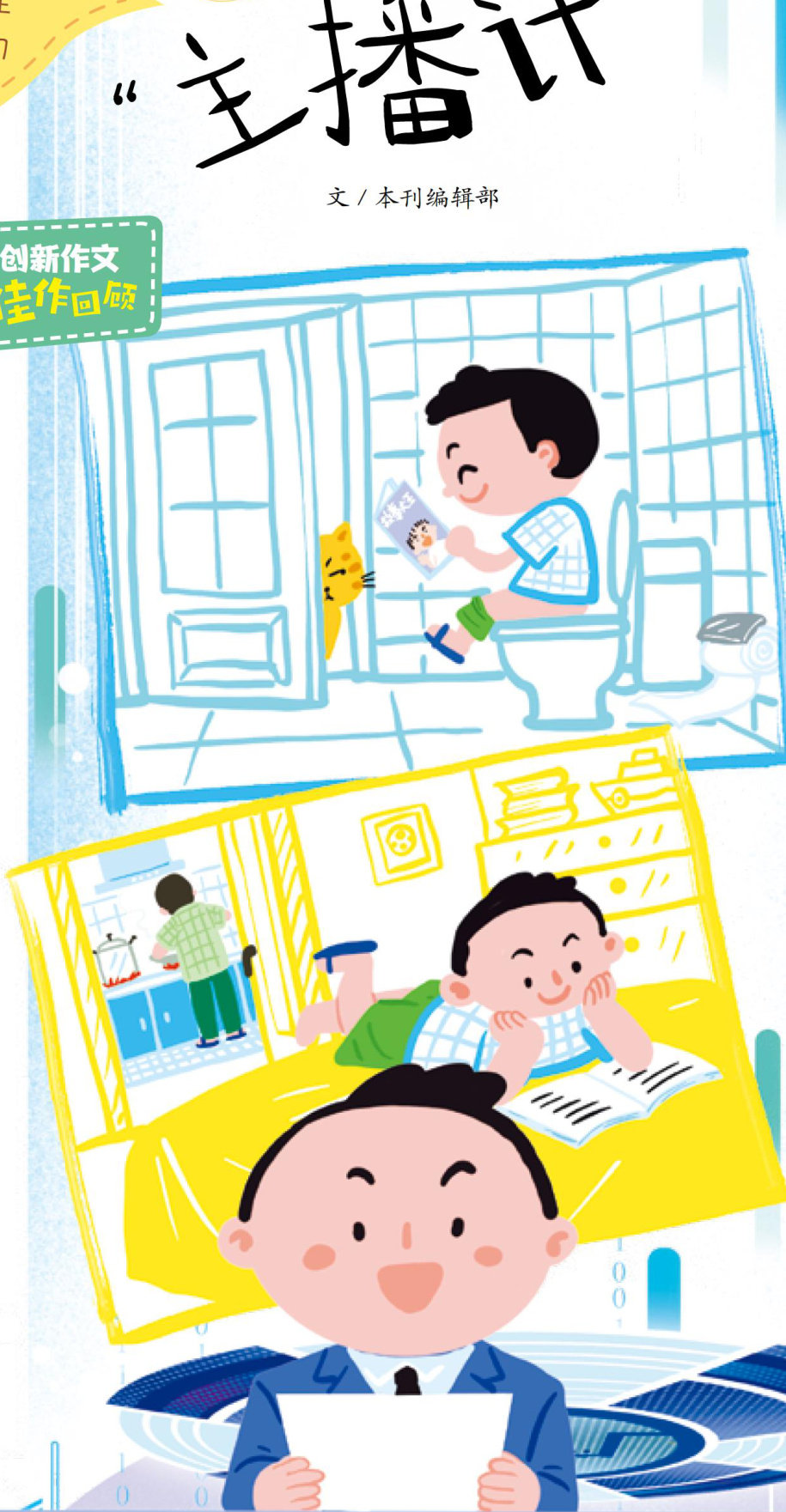 在2024年5月号的《作文三十六计》栏目,我们传授给大家一招“播报计”,也就是用新闻联播的形式把看似散乱的素材串联成一篇新意十足的作文。那么,本期的“主播计”和“播报计”又有什么不同呢?让我们先来看看下面这篇范文吧一