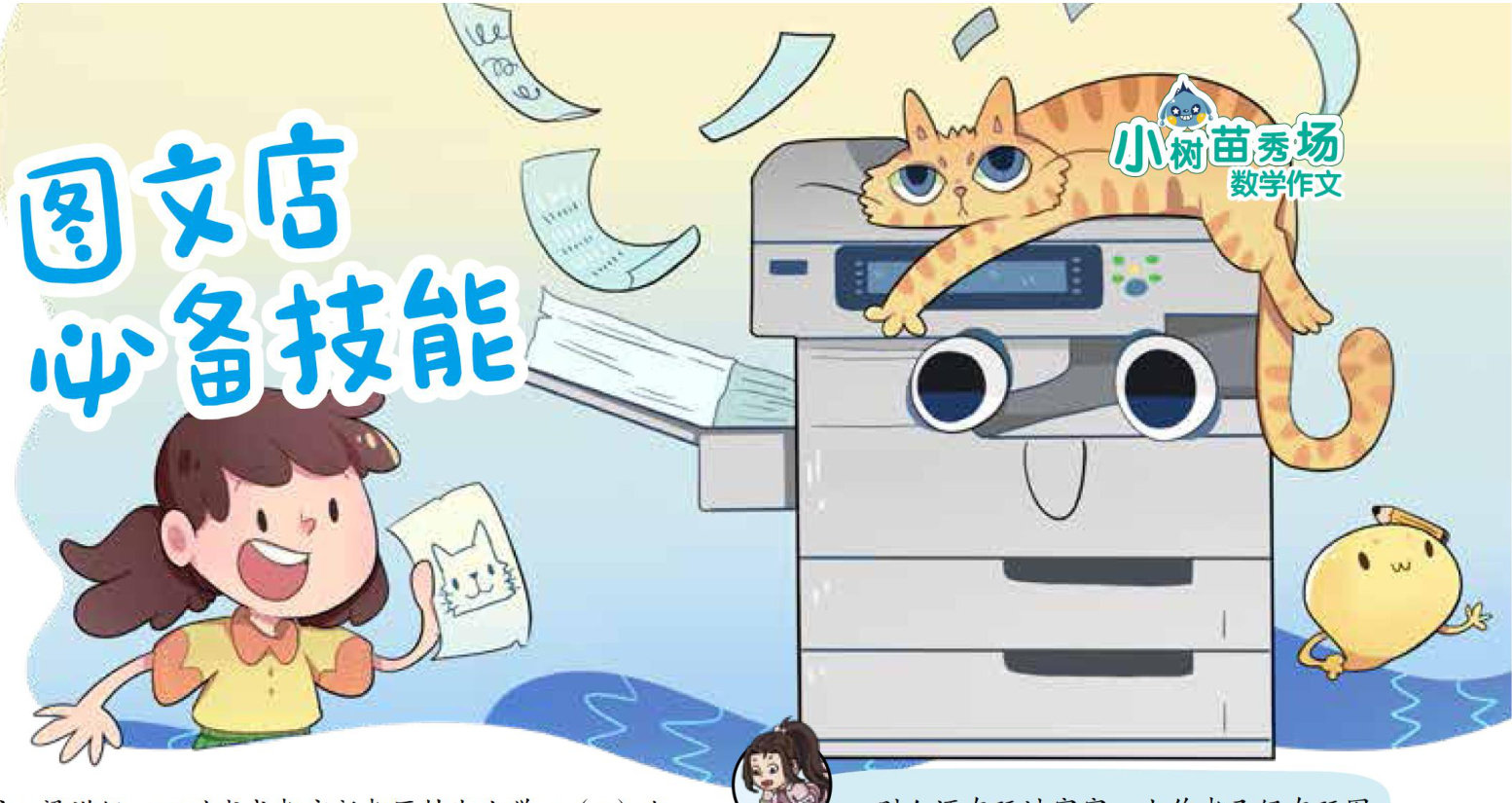 我家经营着一家图文店,妈妈特别喜欢给我和好朋友们打印口算题,搞得小伙伴们都有点“害怕”来我们店里玩,不过我可喜欢待在这里了。而且,我发现要经营好这家图文店,还得是个计算高手呢!