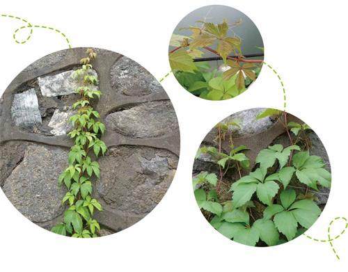 四月以后,地锦醒来了。柔软的长茎上吐出纤细的芽叶,它们在春风中一天天长大。三四天光景,那些抱在一起的嫩叶就舒展开来。它们的颜色有橙黄的、玫红的、黄中带点绿影的,显得十分可爱。