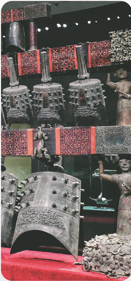 在湖北省博物馆,举世瞩目的曾侯乙编钟巍然矗立。曾侯乙编钟是湖北省博物馆的镇馆之宝,也是中国迄今发现的最完整的青铜礼乐器。当人们驻足观望,满怀震惊之时,却鲜有人知道,这些古老乐器不仅鸣响于祭祀大典,更悄然潜入了汉字结构,成为凝固的礼乐密码。