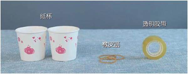 1.首先,将两个纸杯的底部对齐,用透明胶将其粘在一起。