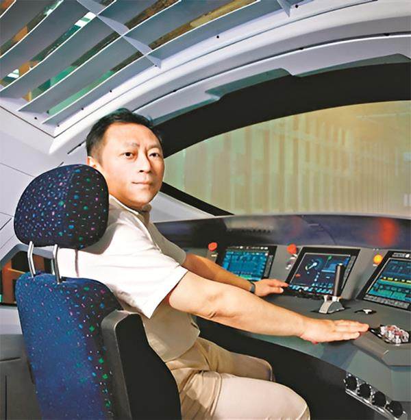 艾渤在高铁模拟驾驶舱。图片|科技日报