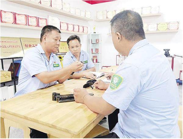 何坤(左一)和劳模创新工作室成员一起学习。资料图
