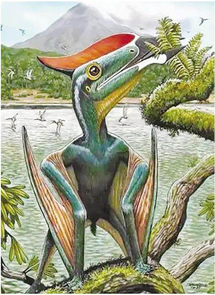 中国翼龙食植生态复原图。毛里利奥·奥利维拉绘