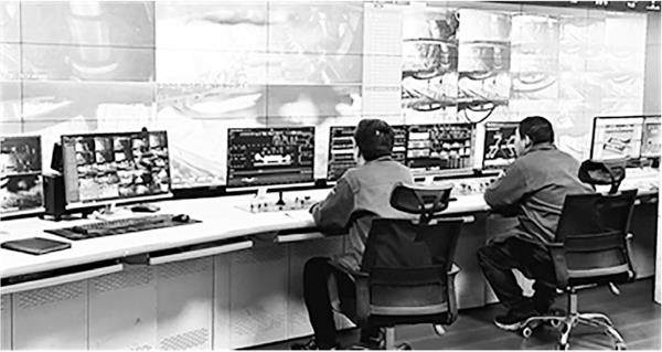 工作人员在汾西矿业曙光煤矿调度指挥中心操作智能平台。受访单位供图