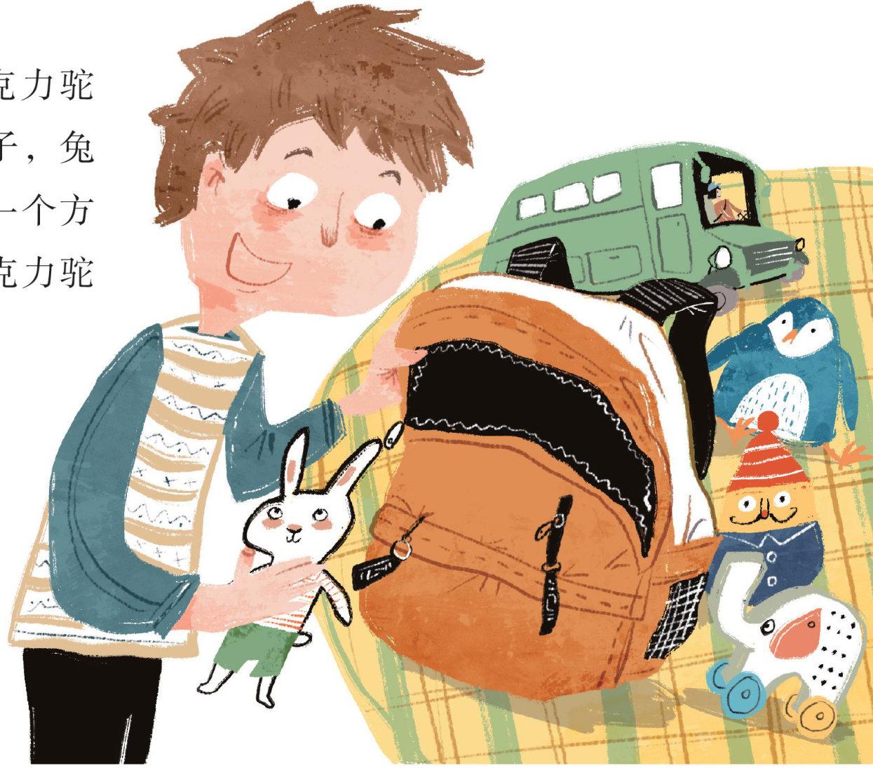 假期,这家人要去看望多勒叔叔。家里的动物玩具们听 到妈妈对两个孩子说:“我们明天出发。你们每个人只允许带一个动物玩具。今天晚上你们要把自己的行李收拾好。”