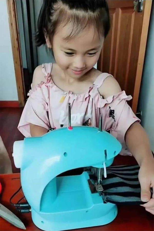 近日,9岁女孩为妈妈改造衣服的视频走红网络。一件普通的黑白波点半身裙,女孩从下摆裁出一宽一窄两块长布条,一番缝纫后,一款露肩波点挂脖式雪纺衬衫就穿到了妈妈身上,动感又时尚;一件侧面带白条纹的黑色长裤,上半截做短裤,两只裤腿被做成了紧身的超短无袖衬衫,胸前小方领用白色条纹画龙点睛,剩下两块带着小尾巴的布块被设计成两只带流苏假口袋,穿上这洋气的小套装,妈妈秒变青春靓丽的小辣妹,洋气又新潮……
