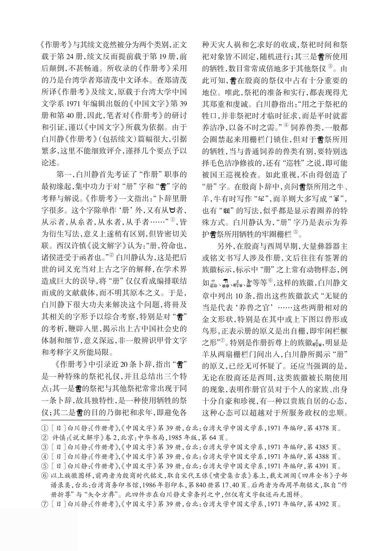 摘 要:中国上古史官职能的演变,与“作册”之关系甚大,据日本学者白川静考证,“册”,最初是养护祭祀牺牲之畜的牢圈栅栏,随后将这种养护状况向君主汇报和向神灵祝告的簿书也称为“册”。“作册”官职,源于养护牺牲兽类的人员,他们需要撰写相应的文书。殷商作册的职能不断扩大,但凡祝词、檄文、册命、封赏文件,无不承担,成为商代要职。(剩余16512字)
