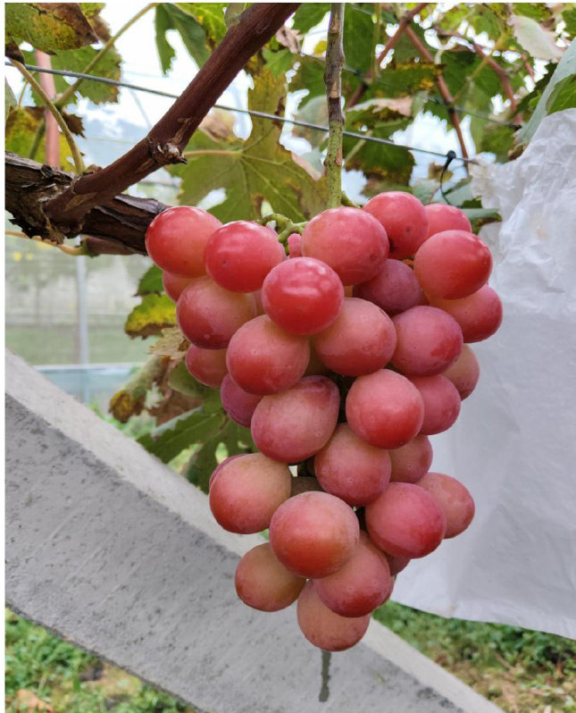Abstract: Queen Nina grape is a new red, large-berry interspecific hybrid cultivar developed through cross-breeding by the Fruit Tree Research Institute of the NARO Institute of Fruit Tree and Tea Science,Japan. Introduced to Maiji, Tianshui, Gansu Province for trial cultivation in2O19,it has demonstrated excellent performance traits through multi-year observation and optimized cultivation techniques.The cultivar exhibits an average cluster weight of 880.6g and an average berry weight of 21.6g . The berries feature a bright red skin and firm, crisp, juicy flesh. Key quality parameters include anaverage soluble solids content of 22.4% ,soluble sugar content of 19.3g/100g ,titratableacidityof 3.58g/kg, and a sugar-acid ratio of 53.91. The fruit also contains 2.11mg/100g of vitamin C and possesses a distinctive vinous aroma. Queen Nina exhibits superior quality and is wel-suited for cultivation in Maiji, Tianshui, and climatically similar regions.This paper also briefly introduces the cultivation techniques employed at the introduction site.