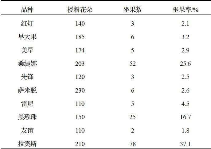 不同授粉配置对日照地区甜樱桃坐果的影响