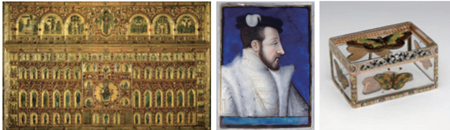 “珐琅”彩(enamel)是一种玻璃质釉彩,通过在基础釉中加入不同配比的金属氧化物,烧制后能够呈现各种颜色。有学者认为,这一釉彩技术源自古埃及,经过西亚欧洲传入中国。[珐琅工艺在欧亚大陆的千年迁徙始终笼罩在技术起源与文明互鉴的迷雾之中。当6世纪拜占庭工匠以铜胎掐丝勾勒出圣徒衣袍的金色轮廓时,他们或许未曾预料,这种将熔融玻璃固着于金属表面的技艺,会沿着骆驼商队的足迹穿越波斯高原,最终在15世纪的中国宫廷催生出名为“景泰蓝”的瑰丽变体。(剩余9741字)