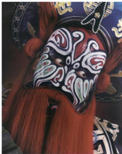 脸谱是中国戏曲艺术人物造型的独特方法,是戏曲演员面部化妆的一种特殊形式。[与生、旦行当淡雅自然的妆饰不同,脸谱主要应用于净、丑角色,借助高度概括的线条和强烈对比的色彩,以夸张与象征的手法,将人物的性格特征、身份地位乃至情感变化直观地呈现于面部。