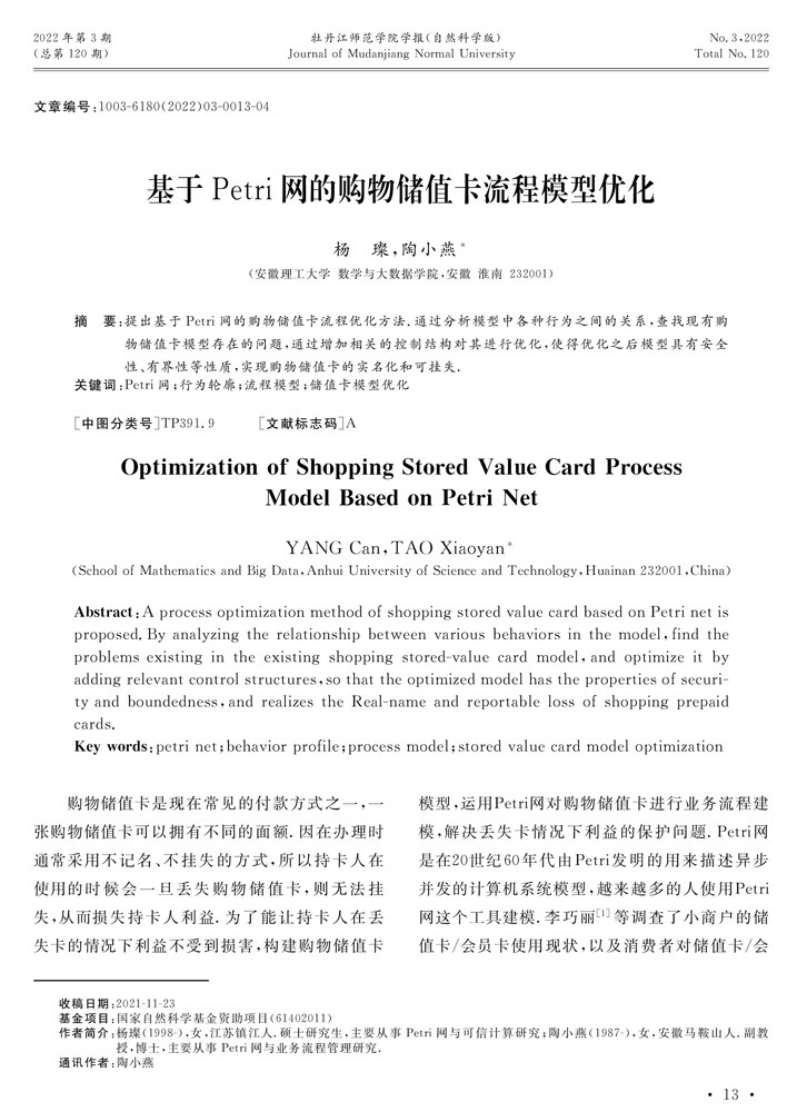 关键词:Petri网;行为轮廓;流程模型;储值卡模型优化
